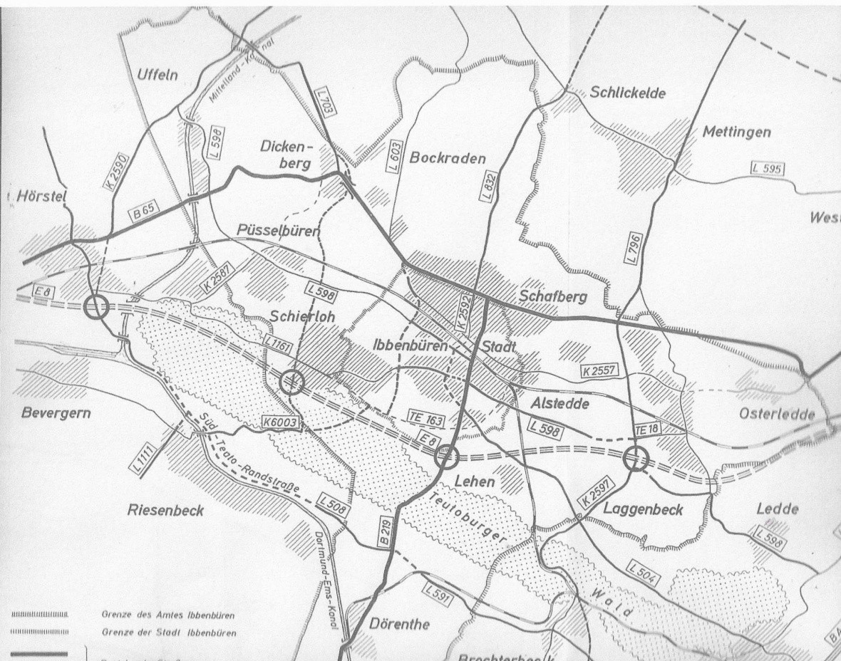 Der Übergang von der Bundesstraße zur Autobahnplanung verlief über viele Jahre und war von intensiven Diskussionen begleitet – insbesondere im Raum Ibbenbüren. Nachdem die damalige Europastraße 8 (später A 30) offiziell in das Autobahnnetz aufgenommen worden war, stand fest, dass ein vierspuriger Ausbau mit Mittelstreifen erfolgen sollte. Gleichzeitig bedeutete dies, dass zusätzliche Anschlussstellen (Schierloh) vor Ort nur eingeschränkt realisierbar sein würden.