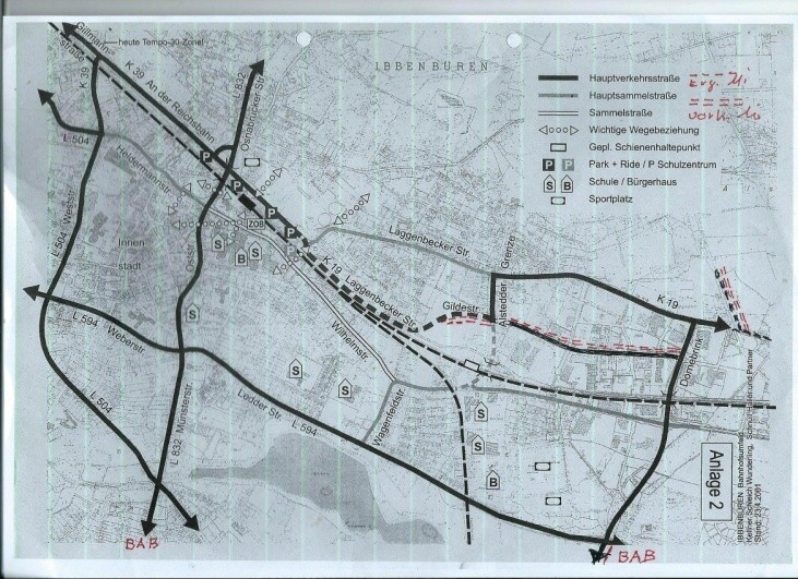Ebenfalls nur teilweise verwirklicht wurde die Idee, parallel zur Bahnstrecke die Straße „An der Reichsbahn“ bis zur Gildestraße fortzuführen (im Plan B). Diese Verbindung sollte ursprünglich als zusätzliche nördliche Entlastung für Große Straße, Heldermannstraße und Wilhelmstraße dienen. Realisiert wurde bislang lediglich ein kurzer Abschnitt im Gewerbegebiet Gildestraße.