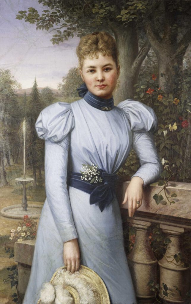 Der Ursprung des Kunstwerks liegt im Jahr 1899. Damals ließ sich eine junge Dame auf großer Leinwand sich porträtieren. Die Malerin Maria Anna Wagener aus Münster malte sie bis ins kleinste Detail fotografisch genau, geradezu meisterlich.