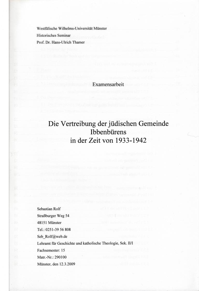 Die Vertreibung der jüdischen Gemeinde Ibbenbürens